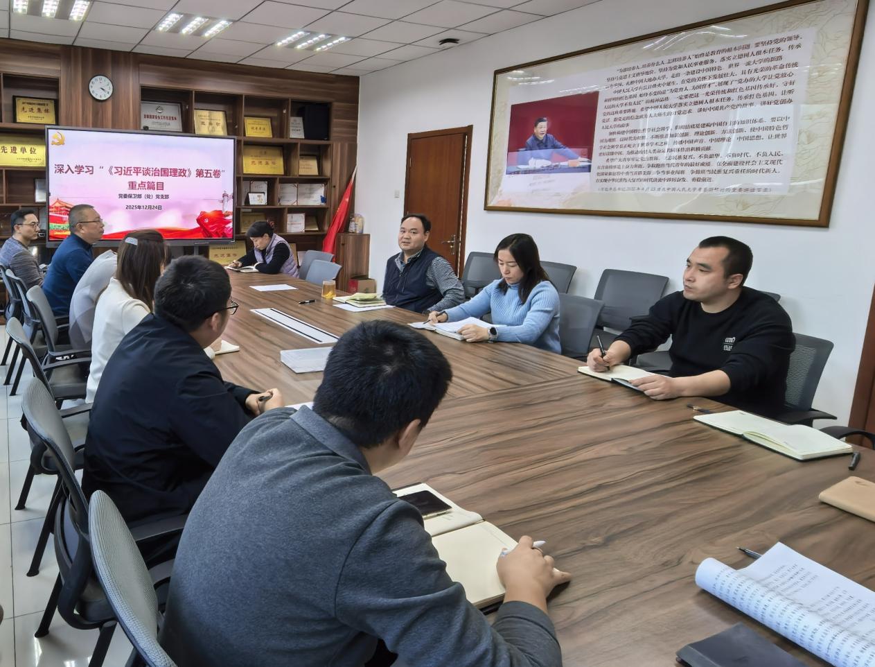 为进一步提升支部党员的理论素养与履职能力,12月24日,党委保卫部(处)党支部召开专题学习会,深入学习习近平法治思想、习近平总书记关于全面依法治国的重要论述以及《习近平谈治国理政》第五卷重点内容,并展开深入研讨。